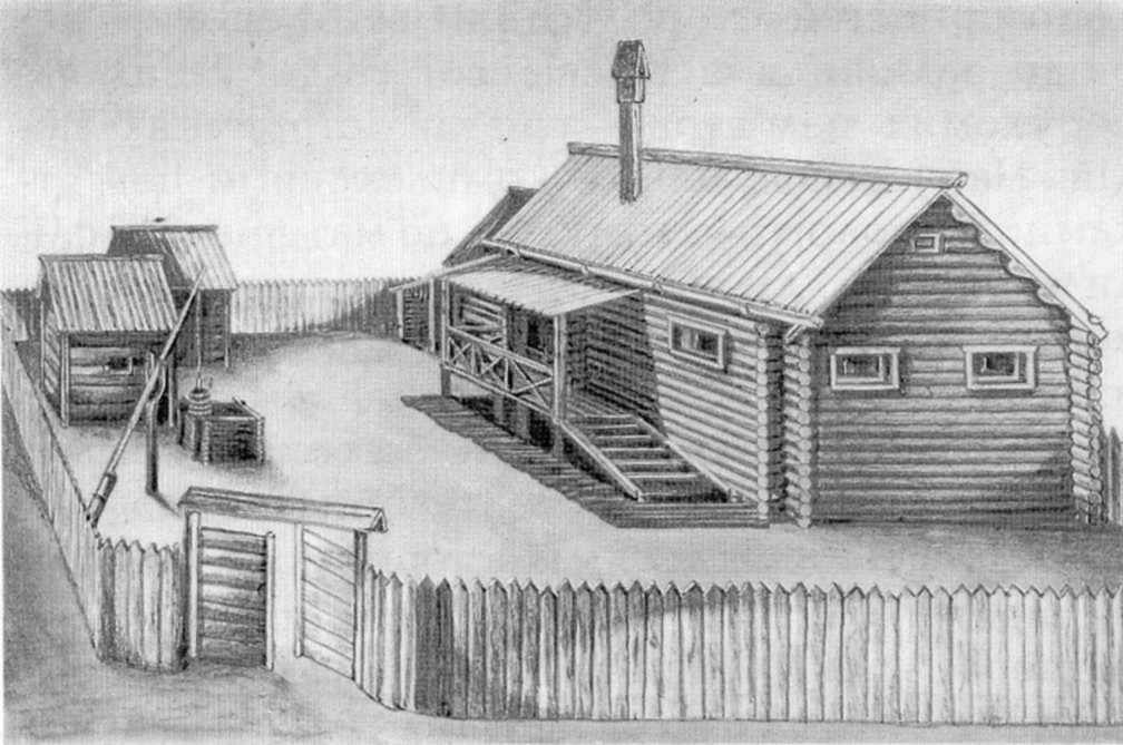 Садиба 1030-х рр. на Житньому ринку з розкопок 1973 р. За реконструкцією П. П. Толочка.