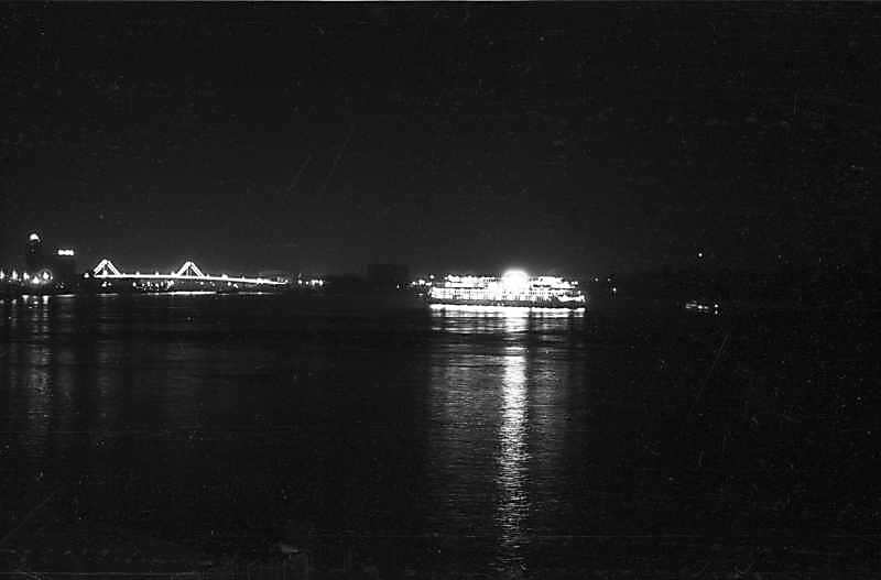 1977 р. Вид на Дніпро і міст через Почайну вночі
