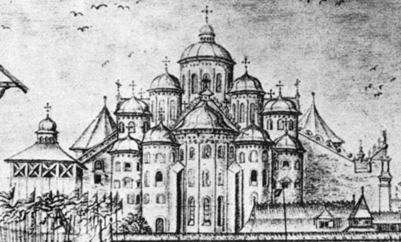 Софійський соборРозмір зображення: 800:483 піксел Джерело: Крізь віки: Київ в образотворчому мистецтві 12 – 20 ст. – К.: Мистецтво, 1982 р., № 38. |