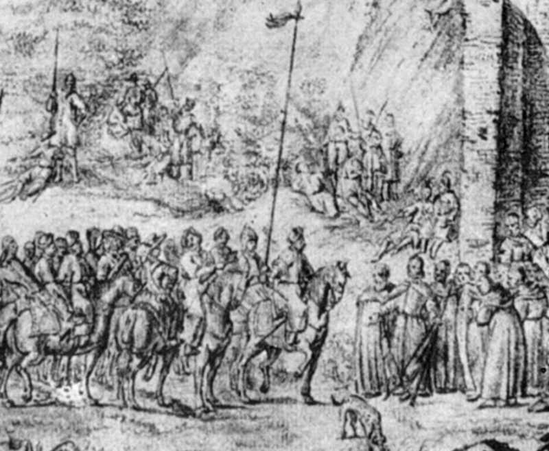 Радзівіл і кияниРозмір зображення: 800:658 піксел Джерело: Крізь віки: Київ в образотворчому мистецтві 12 – 20 ст. – К.: Мистецтво, 1982 р., № 46. |