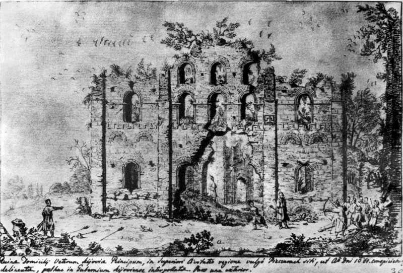 Руїни храму XI ст. Західний фасад. 1651 (копія XVIII ст.).