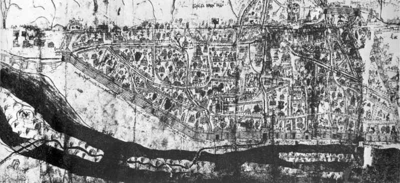 Фрагмент плану Києва. 1693-1695. Туш, перо. Центральний державний історичний архів УРСР в м. Києві, ф. 58, on. 1, с. 13а.