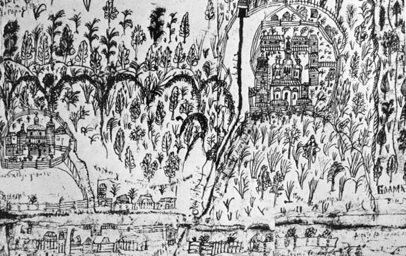 Фрагмент плану Києва. 1693-1695. Туш, перо. Центральний державний історичний архів УРСР в м. Києві, ф. 58, on. 1, с. 13а.