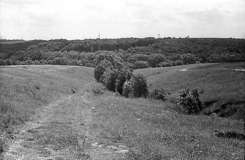 1978 р. Балочка на тлі лісуРозмір зображення: 800:523 піксел 1978 р. Червень. Фото М.І.Жарких. Негатека, № 070-11. |