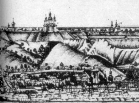 Андріївська церква і фрагмент ПодолуРозмір зображення: 591:439 піксел Джерело: Крізь віки: Київ в образотворчому мистецтві 12 – 20 ст. – К.: Мистецтво, 1982 р., № 79. |
