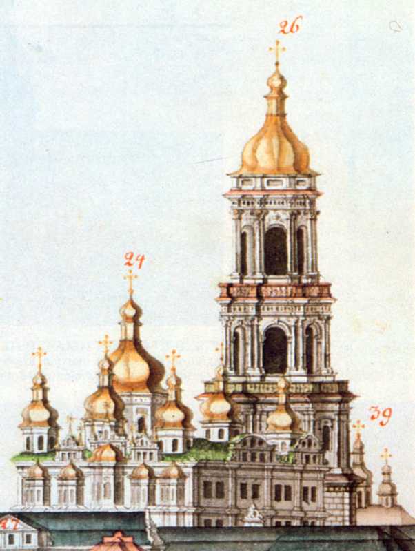 Успенський собор і дзвіницяРозмір зображення: 602:800 піксел Джерело: Крізь віки: Київ в образотворчому мистецтві 12 – 20 ст. – К.: Мистецтво, 1982 р., № 93. |