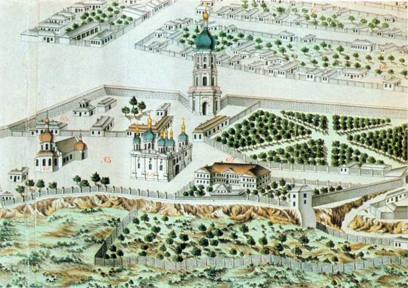 Фрагмент панорами «Перспект Києво-Печерської фортеці й частини форштату з Московського боку». 1783.