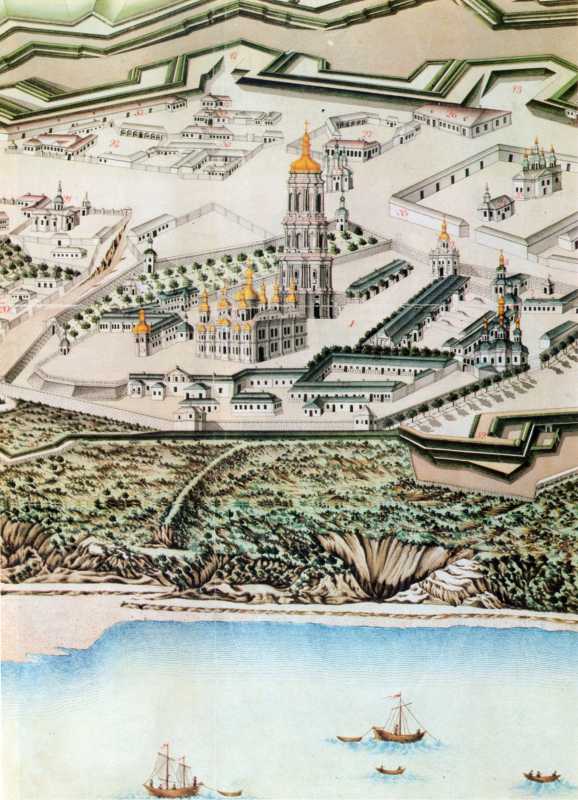 Фрагмент панорами «Перспект Києво-Печерської фортеці й частини форштату з Московського боку». 1783.
