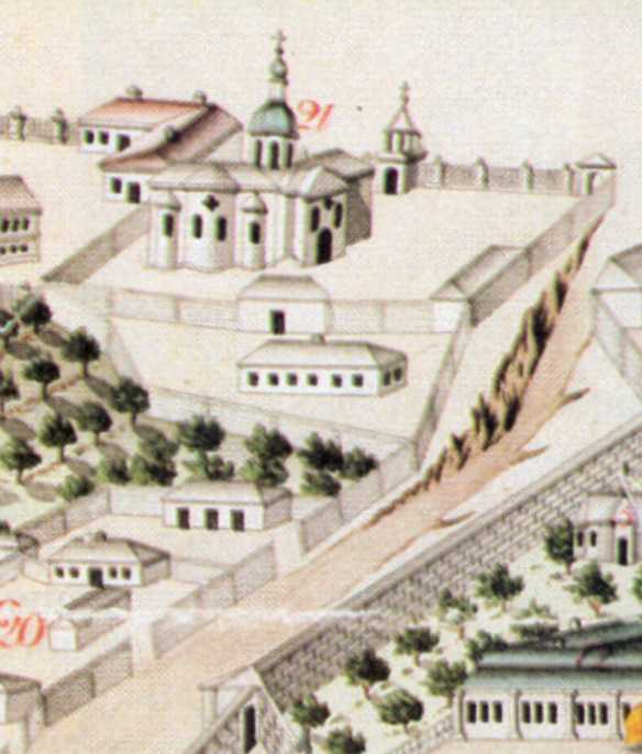 Церква ВоскресінняРозмір зображення: 584:686 піксел Джерело: Крізь віки: Київ в образотворчому мистецтві 12 – 20 ст. – К.: Мистецтво, 1982 р., № 100. |