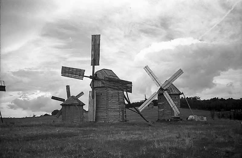 1979 р. Загальний вигляд групи вітряків зі сходуРозмір зображення: 800:521 піксел 1979 р. 7 липня. Фото М.І.Жарких. Негатека, № 103-20. |