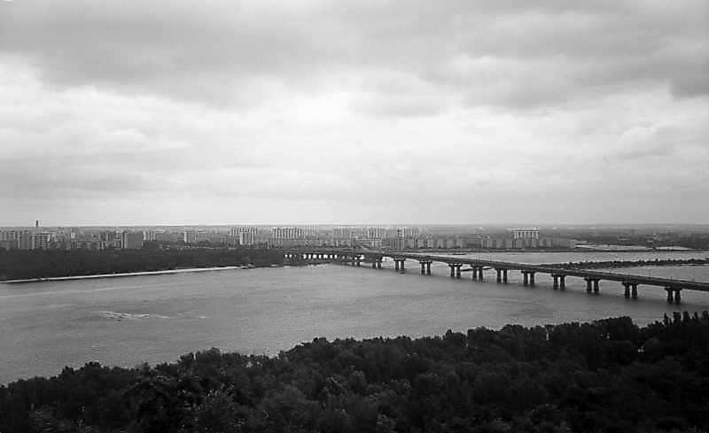Міст Патона та житловий масив БерезнякиРозмір зображення: 800:489 піксел 1980 р. 17 серпня. Фото М.І.Жарких. Негатека, № 122-24. |