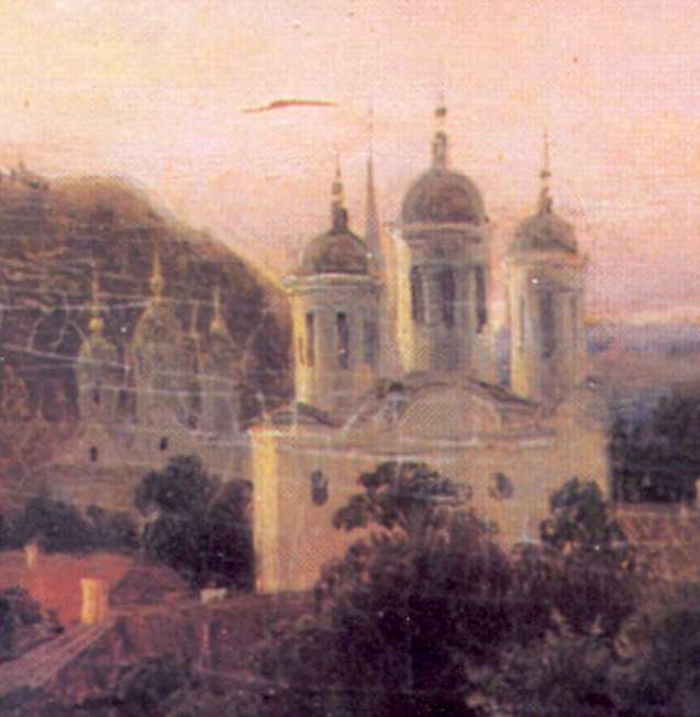 Собор Флорівського монастиря і Покровська церкваРозмір зображення: 637:652 піксел Джерело: Крізь віки: Київ в образотворчому мистецтві 12 – 20 ст. – К.: Мистецтво, 1982 р., № 132. |
