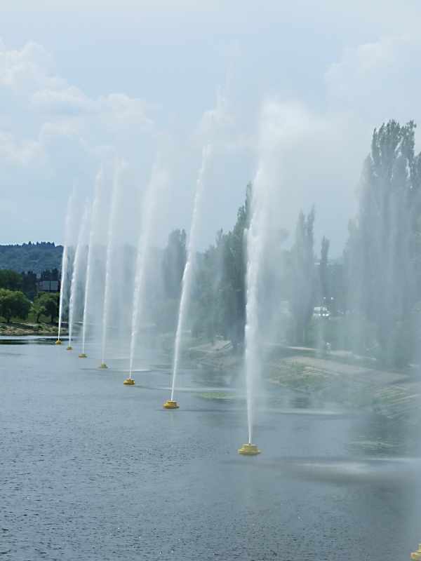2007 р. Фонтани на Русанівському каналі Розмір зображення: 600:800 піксел 10 червня 2007 р. Фото М.І.Жарких. Попередня сторінка | Вище | Наступна сторінка