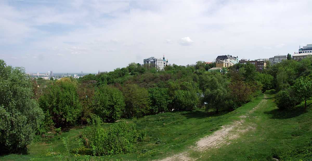 2010 р. Панорама Старокиївської гори з Пейзажної алеїРозмір зображення: 1200:620 піксел 6 травня 2010 р. Фото М.І.Жарких. |