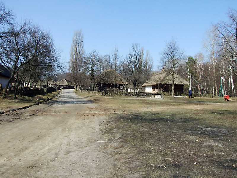 Вулиця і садиба 5 (комора, хата; перед ними – громадська криниця)Розмір зображення: 800:600 піксел 30 березня 2011 р. Фото М.І.Жарких. |