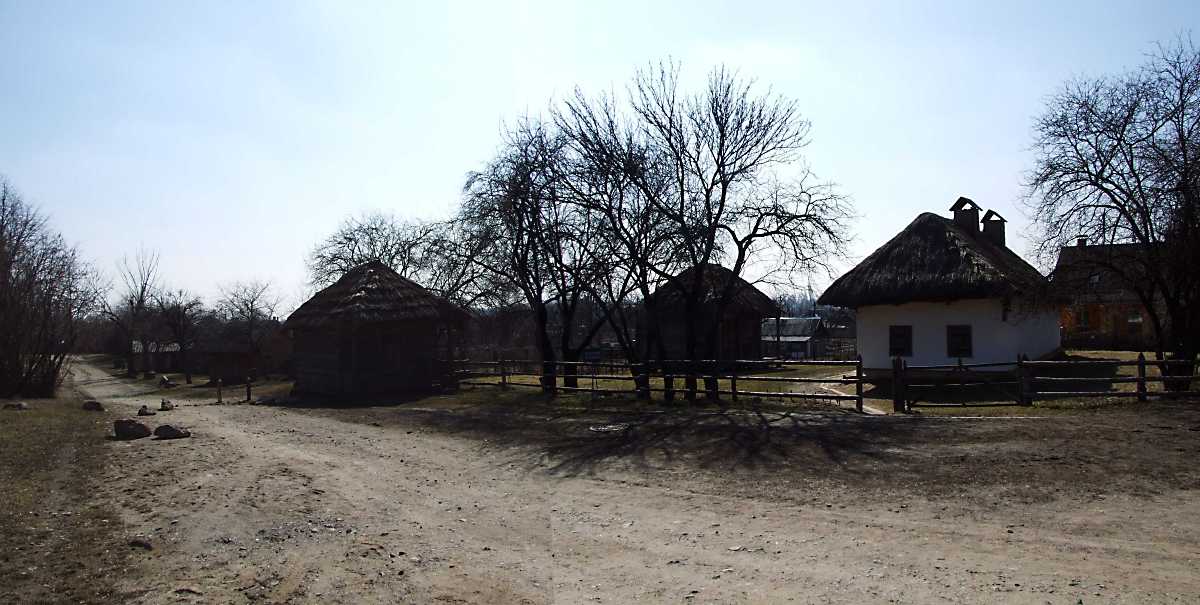 2011 р. Панорама вулиці, кузні 4, комори 3, садиби 2Розмір зображення: 1200:605 піксел 30 березня 2011 р. Фото М.І.Жарких. |