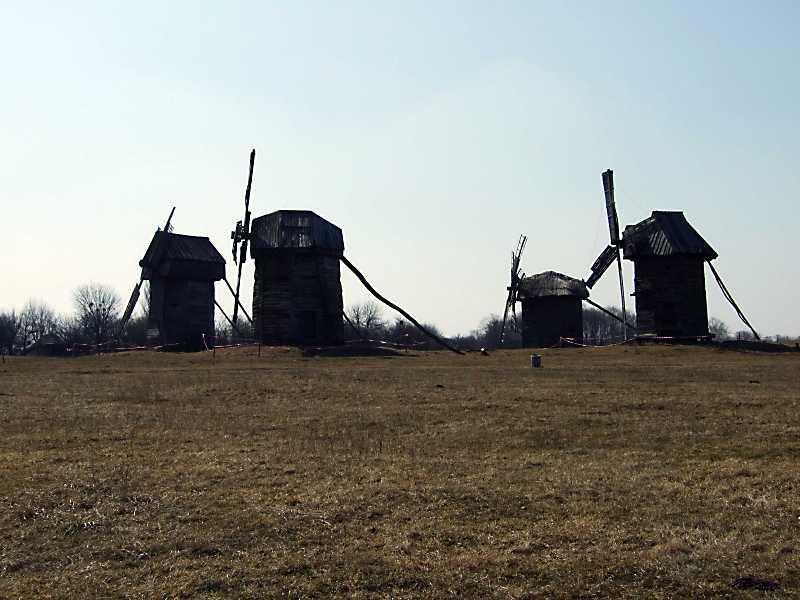 2011 р. Загальний вигляд групи вітряків з півночіРозмір зображення: 800:600 піксел 30 березня 2011 р. Фото М.І.Жарких. |