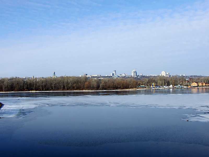 2012 р. Панорама правого берега Дніпра з РусанівкиРозмір зображення: 800:600 піксел 16 березня 2012 р. Фото М.І.Жарких. |