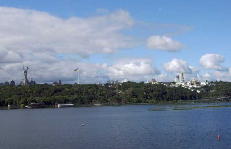 2021 р. Панорама правого берега Дніпра з моста Патона