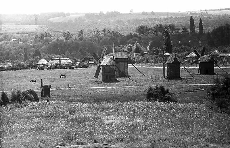 1983 р. Загальний вигляд групи вітряків з півночі, із зони “Карпати”Розмір зображення: 800:515 піксел 1983 р. Вересень. Фото М.І.Жарких. Негатека, № 262-24. |