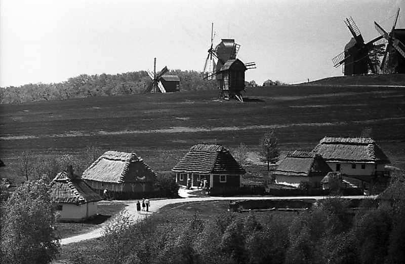 1984 р. Хата з Лугів, садиби з Кадієвець та Яришева на тлі гірки вітряків. Вигляд з північного сходу