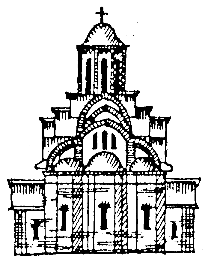 50. Хрестоздвиженську церкву збудовано 1215 р. на Андріївській горі. Виняткове за містобудівним значенням місце в силуеті Верхнього міста. Церква до наших днів не збереглася. На цьому місці у 1747 – 62 рр. зведено Андріївську церкву (арх. Б.-Ф. Растреллі) – нині філіал Національного заповідника «Софія Київська». Гіпотетична реконструкція О. Кутового та В. Розенберга.