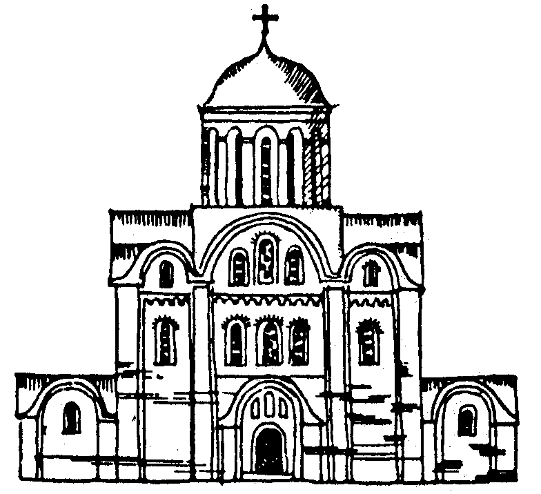 86. Кирилівська церква споруджена близько 1146 р. у монастирі чернігівських князів Ольговичів. Увінчувала з півночі систему ансамблів культових споруд на вершині правобережного дніпровського плато. До наших днів збереглася в перебудованому вигляді у формах 17 – 18 ст. Нині – філіал Національного заповідника «Софія Київська». Архітектуру церкви досліджували у повоєнний період [Асеев Ю. С. Архитектура древнего Киева – К., 1982; Логвин Г. Н. Киев – М., 1982]. Реконструкція Ю. Асєєва.
