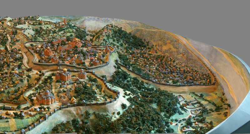 Вигляд з південного сходуРозмір зображення: 800:429 піксел На передньому плані – город Ізяслава, далі за ним – город Володимира; на задньому плані – Копирів кінець; справа видно Поділ. |