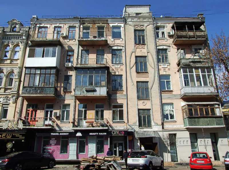 2021 р. Головний фасад Розмір зображення: 800:596 піксел Фото М. І. Жарких, 21 березня 2021 р. Вкладені елементи Сецесійне вікно 5-го поверху Сецесійне вікно 5-го поверху сходової клітки Сецесійне вікно 4-го поверху Сецесійне вікно 3-го поверху
