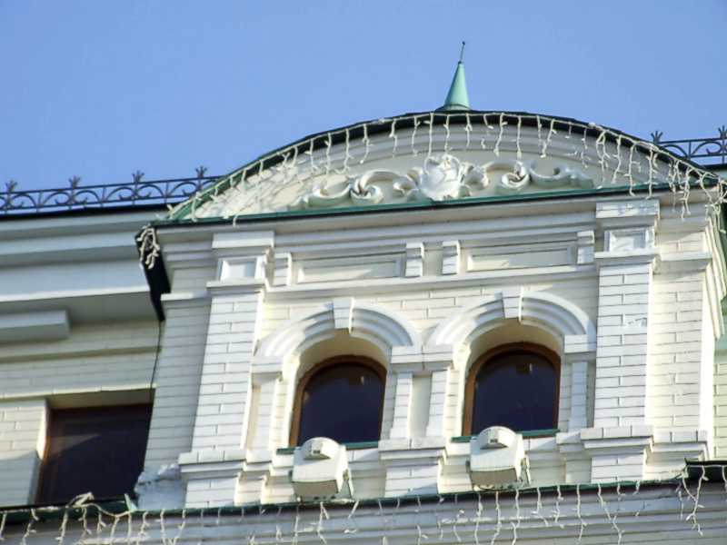 Вікна 5-го поверху і фронтон Розмір зображення: 800:600 піксел Фото М. І. Жарких, 27 березня 2021 р. Вище | Наступна сторінка