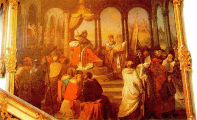 Егінк І. Вибір віри князем ВолодимиромРозмір зображення: 686:420 піксел Егінк І. Вибір віри князем Володимиром. Полотно, олія. 19 ст. Джерело: Звід пам’яток історії і культури України. – К.: 1999 р., т. 1 (Київ), с. 158. |