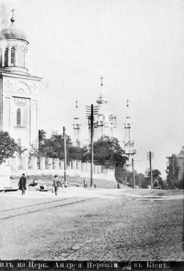 Поч. 20 ст. Загальний вигляд у перспективі вул. ВолодимирськоїРозмір зображення: 626:921 піксел Глеб Савченко Киев 100 лет назад: Фото из архива Нью-Йоркской публичной библиотеки (11 января 2016 г.) Ліворуч – фрагмент Десятинної церкви. |