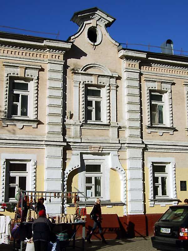 Фрагмент фасаду по Андріївському узвозу Розмір зображення: 600:800 піксел 9 листопада 2008 р. Фото М.І.Жарких. Вкладені елементи Вікно 2-го поверху