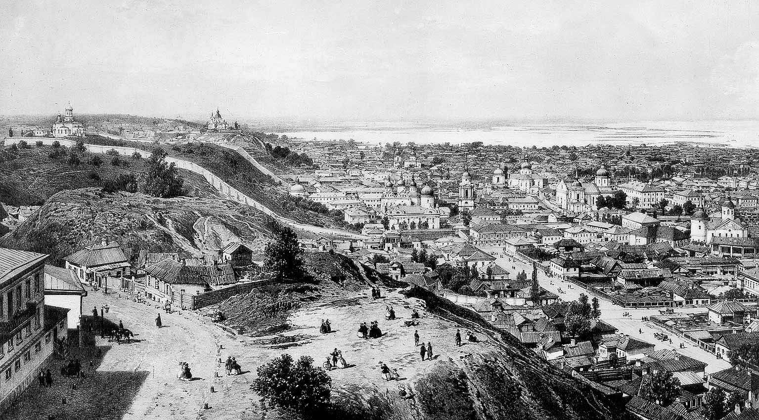 1862 р. Перспектива в бік ПодолуРозмір зображення: 1535:850 піксел Рисунок 1862 р. Художник дивився з площадки біля Андріївської церкви. |