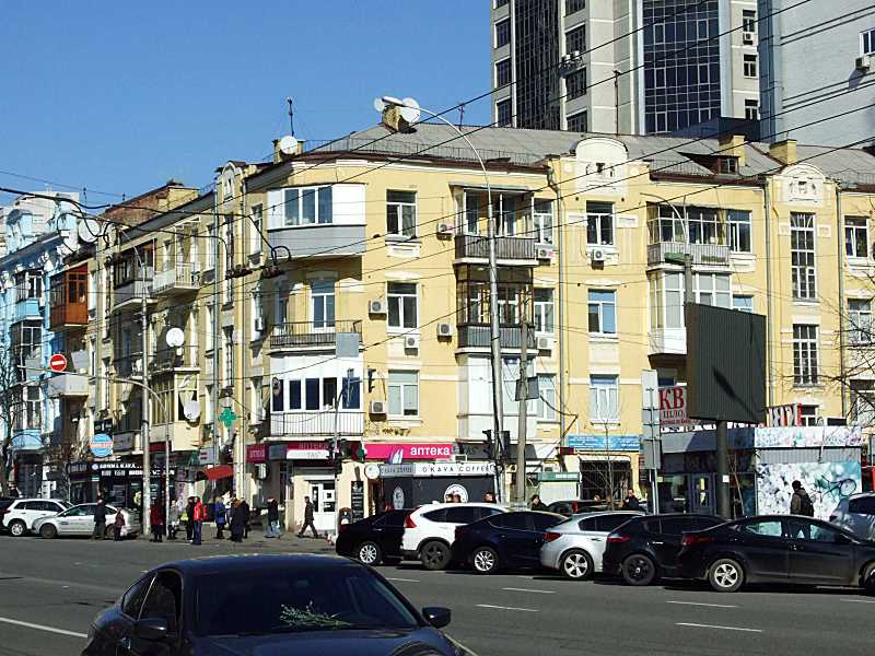 Житловий будинок (№ 47)Розмір зображення: 800:600 піксел Ліворуч – вул. Антоновича, праворуч – вул. Фізкультури. Фото М. І. Жарких, 12 березня 2020 р. |