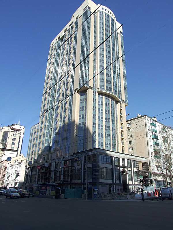Житловий комплекс «Володимирський» (№ 109)Розмір зображення: 600:800 піксел Ліворуч – вул. Антоновича, праворуч – вул. Володимиро-Либідська. Фото М. І. Жарких, 12 березня 2020 р. |