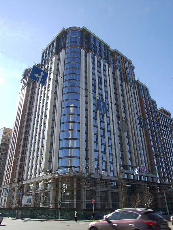Житлово-офісний будинок (№ 118)Розмір зображення: 600:800 піксел Ліворуч – вул. Антоновича, праворуч – вул. Володимиро-Либідська. Фото М. І. Жарких, 13 березня 2020 р. |