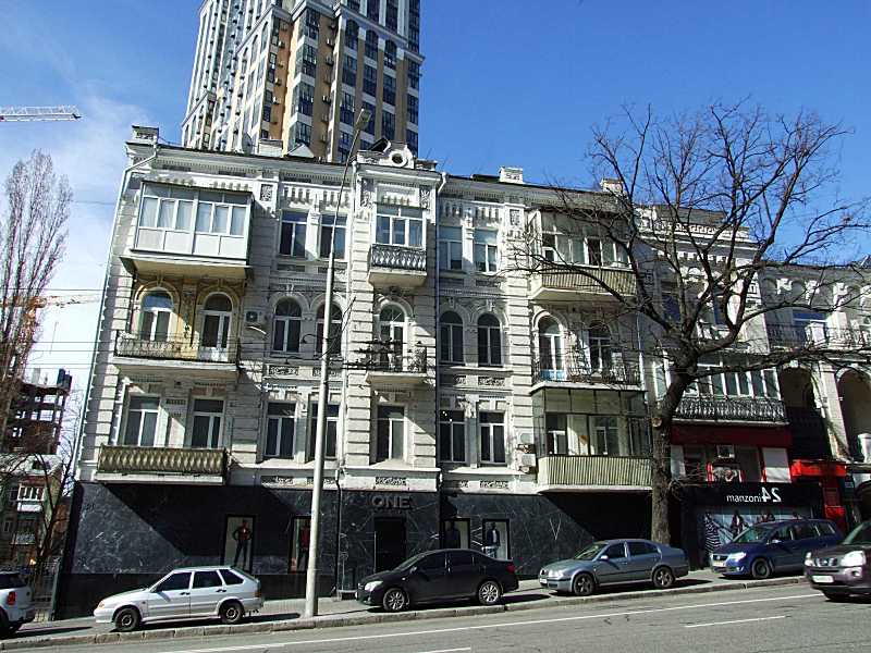 2020 р. Головний фасад Розмір зображення: 800:600 піксел Фото М. І. Жарких, 13 березня 2020 р. Вкладені елементи Балкон 4-го поверху Балкон 3-го поверху Вікна 2-го поверху