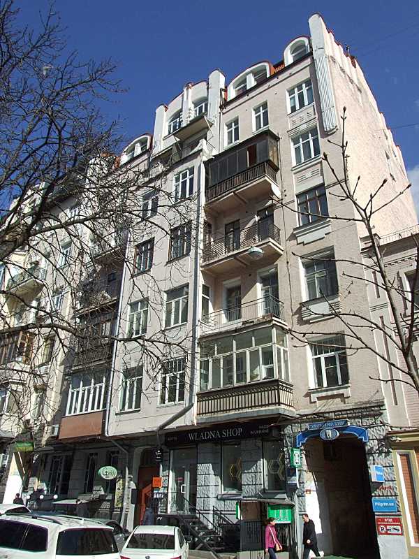 Житловий будинок (№ 3а) Розмір зображення: 600:800 піксел Фото М. І. Жарких, 12 березня 2020 р. Вкладені елементи 2009 р. Загальний вигляд з південного заходу 2020 р. Фрагмент 4-7-го поверхів (+) 2020 р. Сецесійний вхід