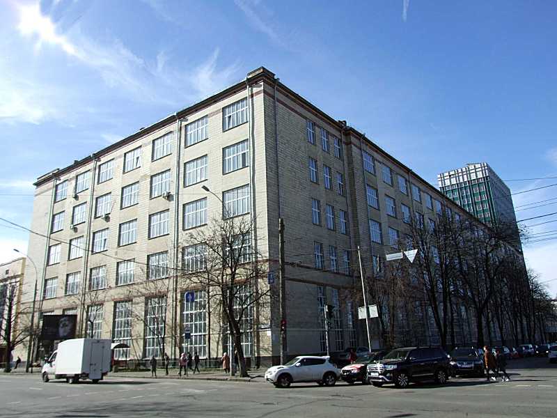 Виробничий корпус (№ 56 / Ділова, 15)Розмір зображення: 800:600 піксел Ліворуч – вул. Антоновича, праворуч – вул. Ділова. Фото М. І. Жарких, 13 березня 2020 р. |
