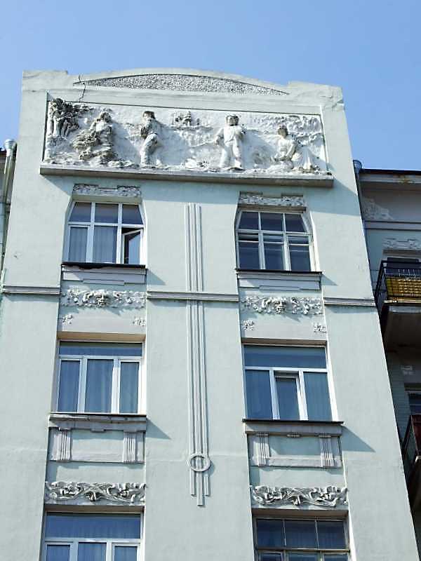 Еркер з фронтоном Розмір зображення: 600:800 піксел 7 квітня 2009 р. Фото М.І.Жарких. Вкладені елементи [2] Фронтон (+) Рельєфна вставка з маскою лева