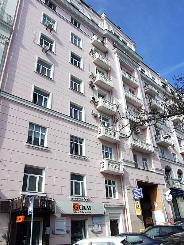 2020 р. Ліва частина фасаду. Вигляд з південного сходуРозмір зображення: 600:800 піксел Фото М. І. Жарких, 13 березня 2020 р. |