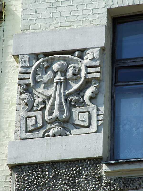 Рельєфна вставка на рівні 3-го поверху Розмір зображення: 600:800 піксел 7 квітня 2009 р. Фото М.І.Жарких. Вище | Наступна сторінка