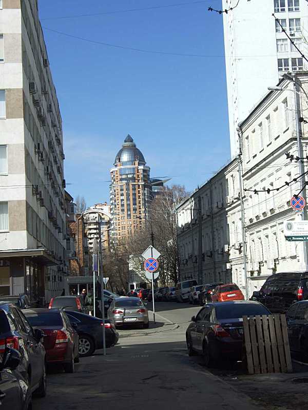 Фото М. І. Жарких, 12 березня 2020 р. Перспектива замклене баштою у дворі буднку по бульвару Лесі Українки, 7б.