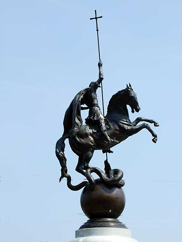2011 р. Скульптура св.Георгія і змія у профільРозмір зображення: 600:800 піксел 1 травня 2011 р. Фото М.І.Жарких. |