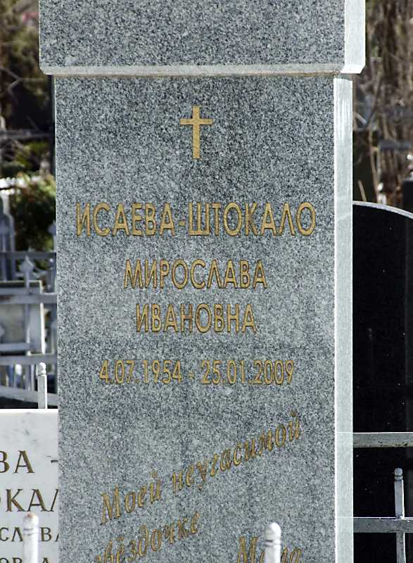 Напис на стелі М. І. Ісаєвої-Штокало Розмір зображення: 587:800 піксел 9 квітня 2013 р. Фото М.І.Жарких. Попередня сторінка | Вище | Наступна сторінка