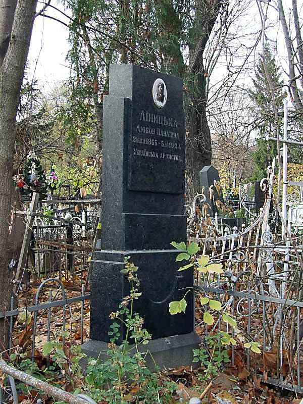 Могила Л.П.Ліницької – актриси, пам’ятник 1956 р. [Памятники истории и культуры Украинской ССР. – К.: 1987 г., с. 20].