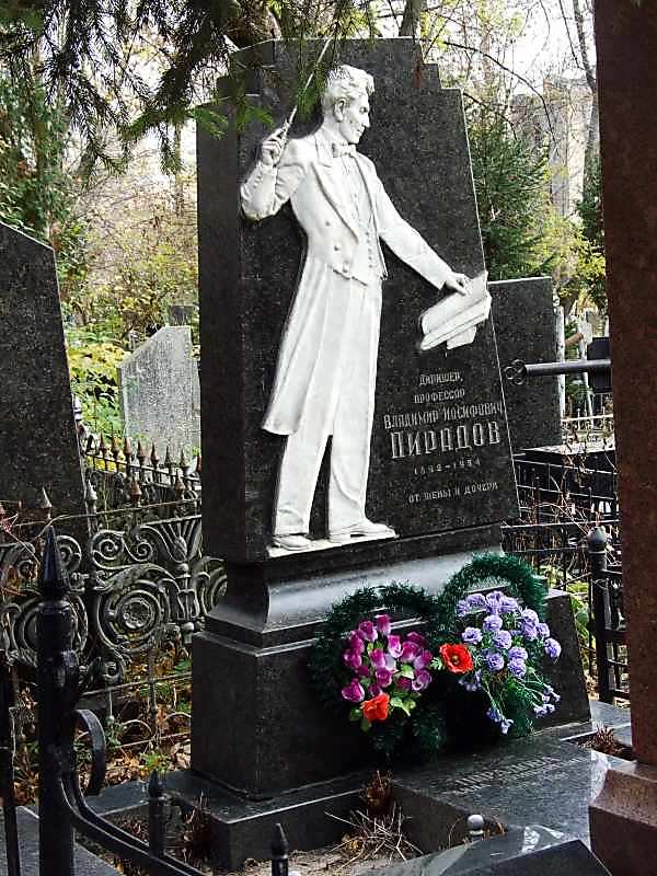 Могила В.Й.Пірадова – диригента, нар. артиста УРСР, пам’ятник 1954 р., скульптор М.Морозов [Памятники истории и культуры Украинской ССР. – К.: 1987 г., с. 20].