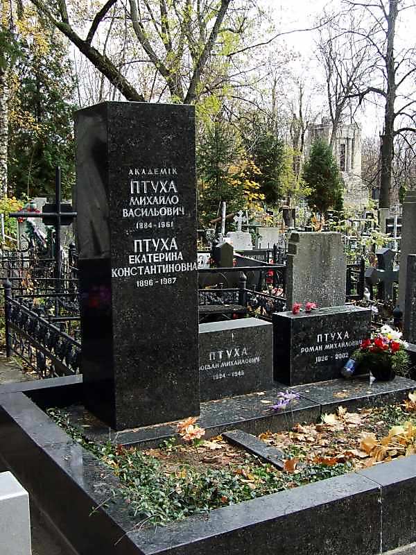 Могила економіста-статистика АН УРСР, члена-кореспондента АН СРСР, академіка АН УРСР М.В. Птухи (дільниця 8) – пам’ятка історії (1961 р.) [Постанова Кабінету міністрів України № 928 від 3.09.2009 р. “Про занесення об’єктів культурної спадщини національного значення до Державного реєстру нерухомих пам’яток України”].
