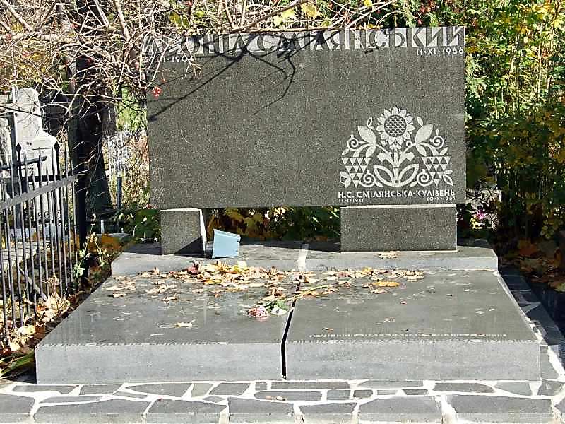 Могила Смілянського Л. (1904 – 1966)Розмір зображення: 800:600 піксел Могила Л.І.Смілянського – письменника, пам’ятник 1972 р., архітектор Я.Ковбаса [Памятники истории и культуры Украинской ССР. – К.: 1987 г., с. 19]. |